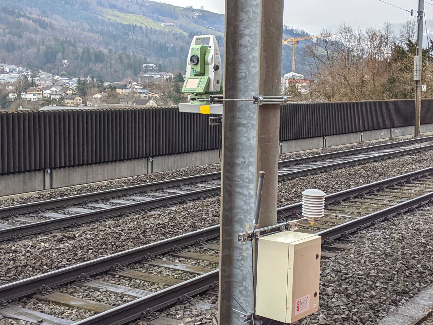 Angrenzend an die SBB Linie Luzern – Arth-Goldau wird ein neues Wasserreservoir gebaut. Da die Baugrube im Sicherheitsbereich der Gleise liegt, wird das Stützbauwerk kurz vor dem Bahnhof mit einem automatischen Geomonitoringsystem auf Deformationen überwacht. Dabei wurde eine Totalstation auf der gegenüberliegenden Seite der Gleise zur Baugrube installiert. Die Totalstation misst in regelmässigen Zeitabständen alle Ziele an der Stützmauer und den Fahrleitungsmasten. Aus den Messungen werden die Deformationen und die Neigung der Fahrleitungsmasten berechnet. Alle Resultate sind über die Webplattform einsehbar, welche auch die automatische Alarmierung bei Grenzwertüberschreitungen steuert. Zusätzlich zum Geomonitoring, werden die Gleise im Falle von Setzungen und Schiebungen manuell überwacht. Dazu wurde vorgängig eine Nullmessung durchgeführt. Sollten grössere Deformationen am Stützbauwerk auftreten werden weitere manuelle Folgemessungen ausgelöst.